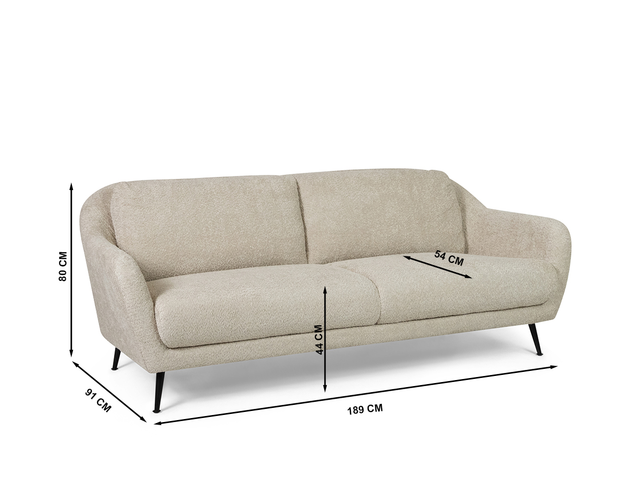 Dimensions (cm): 189 (W) x 91 (D) x 80 (H), seating height 44 cm, -depth 54 cm