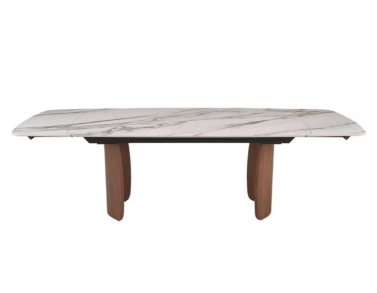It is not recommended to place hot objects (e.g. pans) on the ceramic tabletop, as a sudden temperature change can cause damage, we recommend using a heat protection base. The table should be placed away from heaters and out of direct sunlight. Table mats are recommended to avoid stains and scratches. Use a soft and clean cloth to remove dust and light dirt, as liquids that get on the table do not soak into the ceramic and remain on the surface of the table, it may cause stains. Liquids should be cleaned from the table surface with an absorbent cloth. For cleaning, we recommend using a glass cleaner, for very stubborn stains, you can use an abrasive sponge.