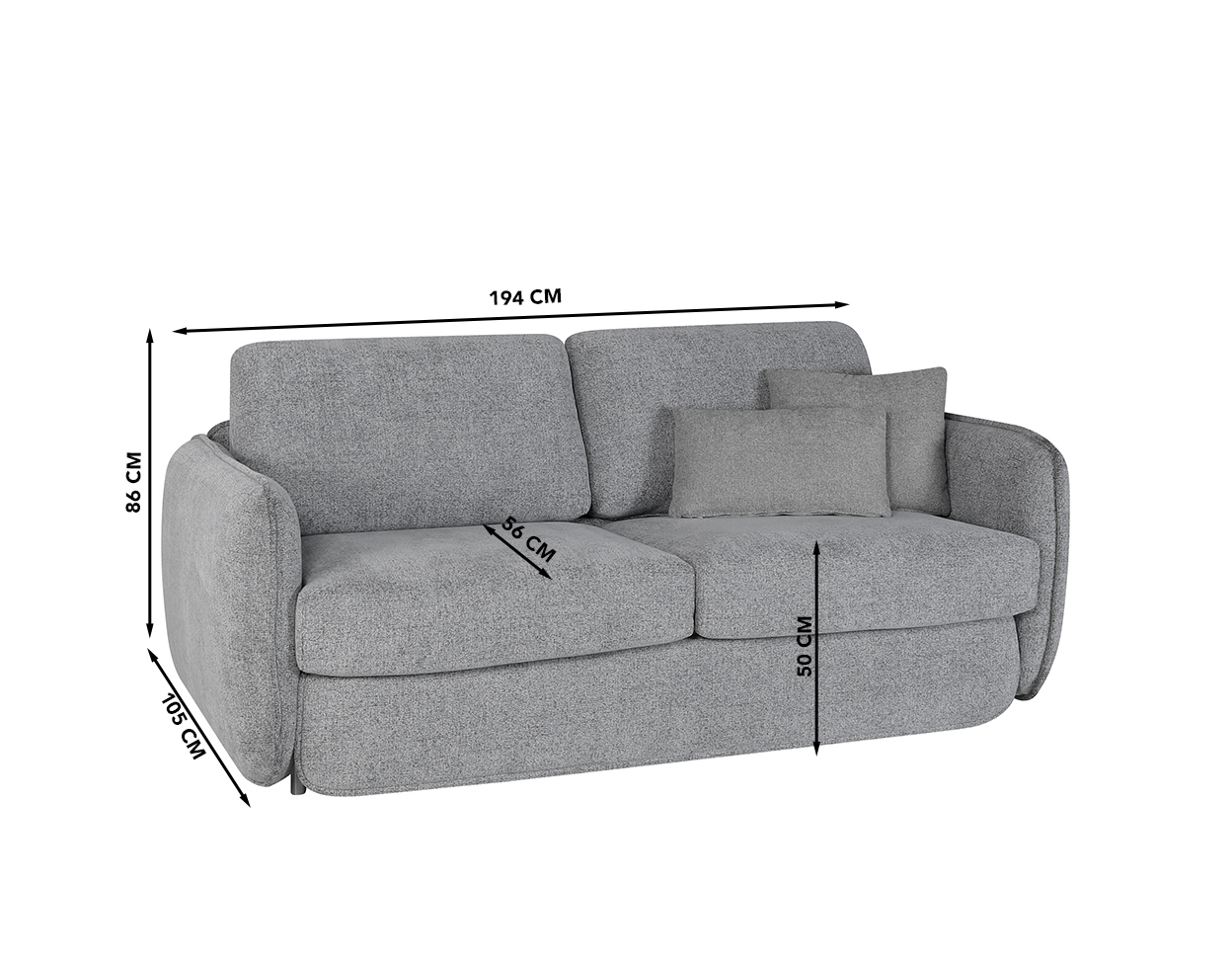 Dimensions (cm): 194 (W) x 105 (D) x 86 (H), seat height 50 cm, -depth 56 cm