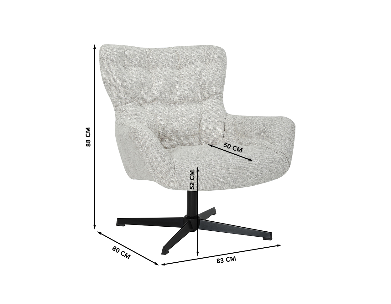 • Seating lenght is 52 cm, seating depth 50 cm
