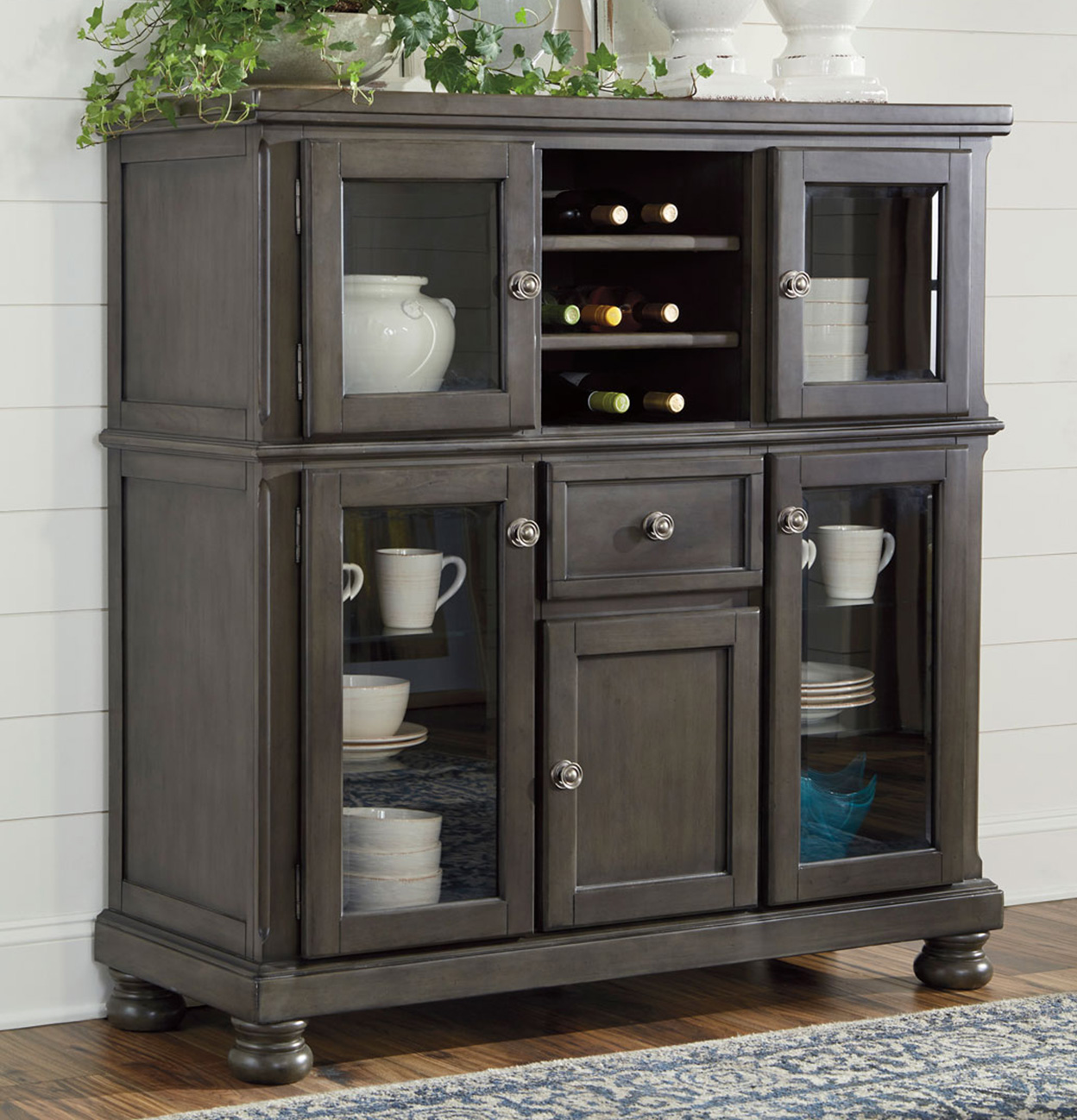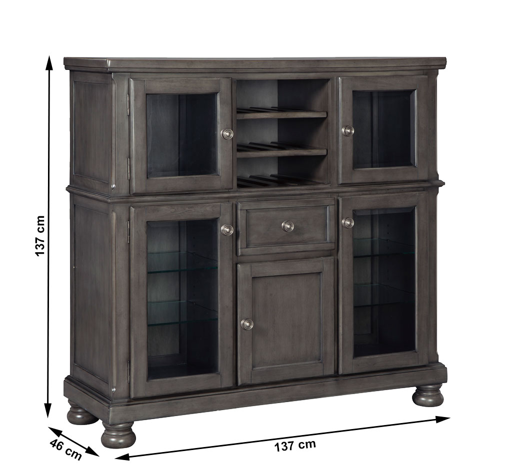 • 2 lower cabinets with glass-front doors and 2 glass shelves each