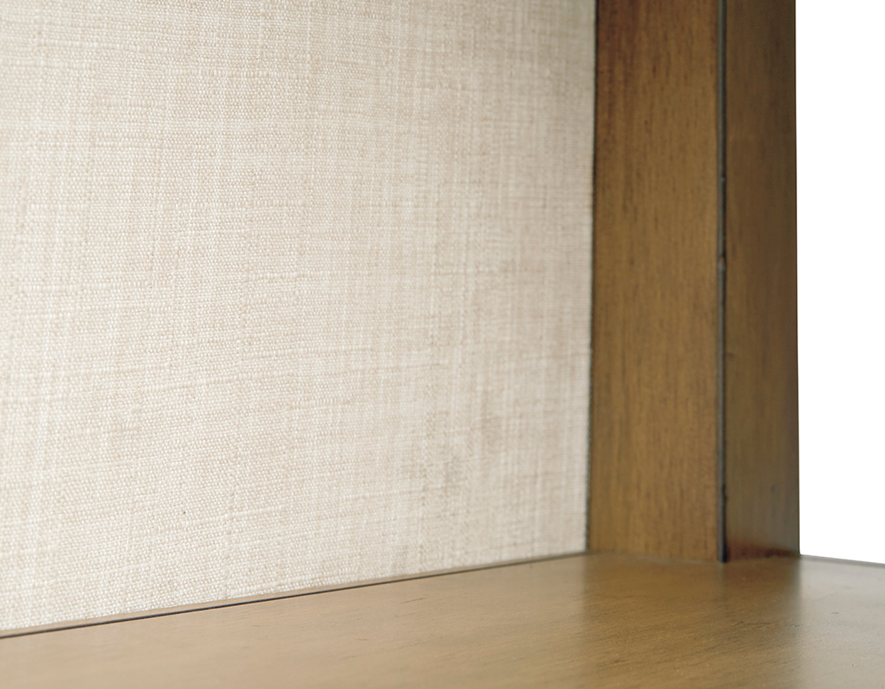 • Upholstered in beige polyester fabric