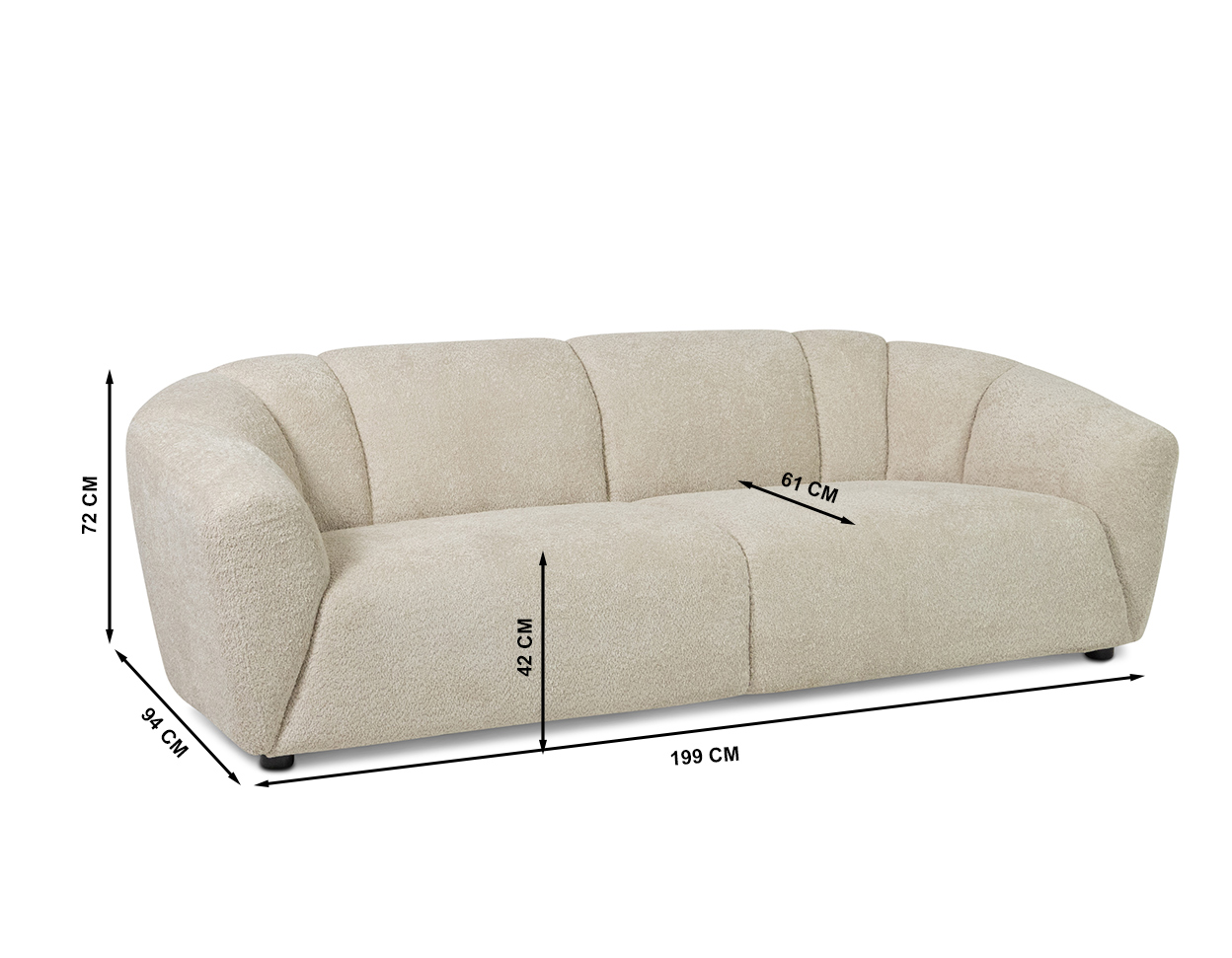 Dimensions (cm): 199 (W) x 94 (D) x 72 (H), seating height 42 cm, -depth 61 cm