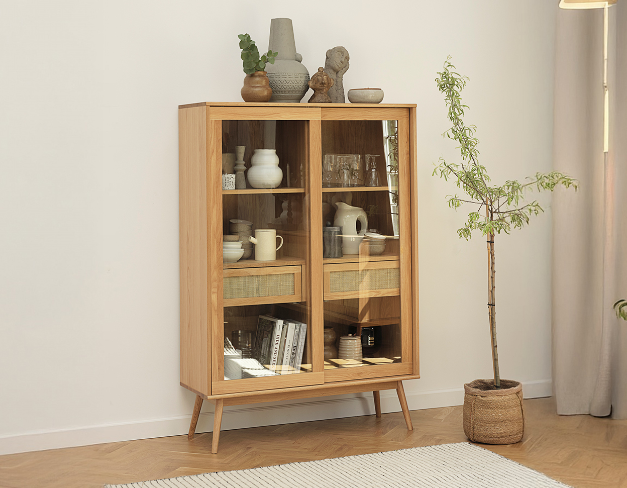 • Doors are made of solid oak glass