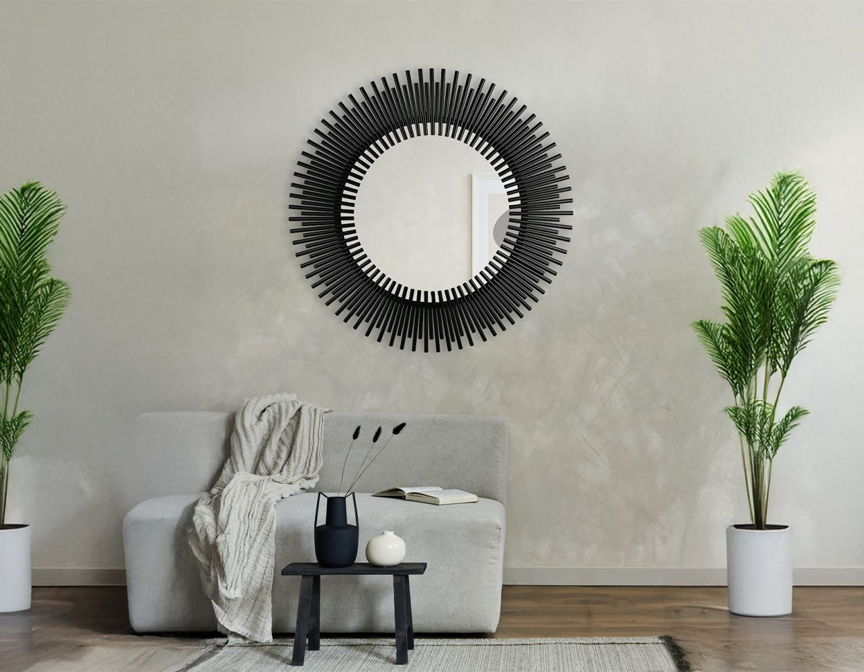 • The mirror frame is made of black metal