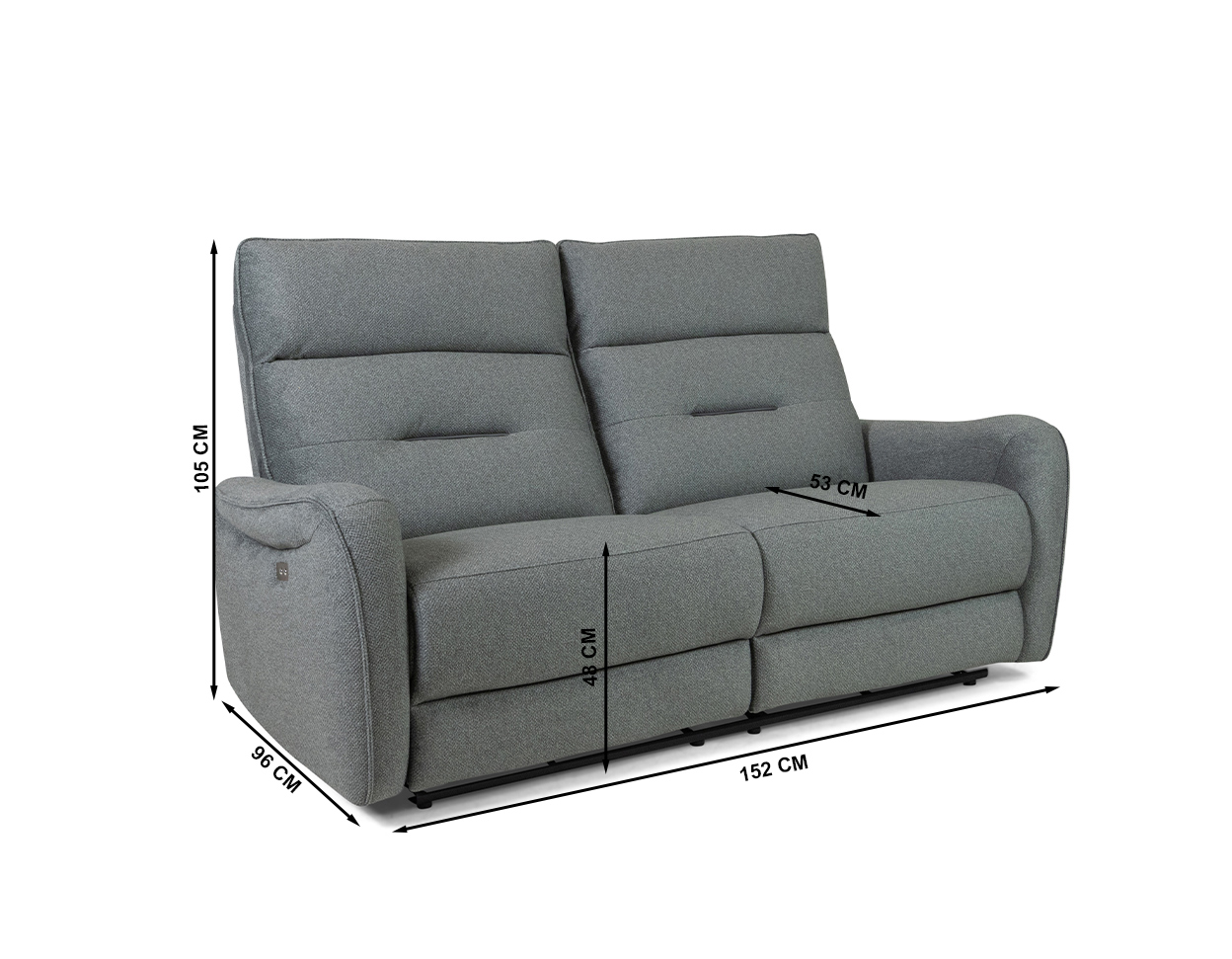 • The sofa has two electrically adjustable seating parts