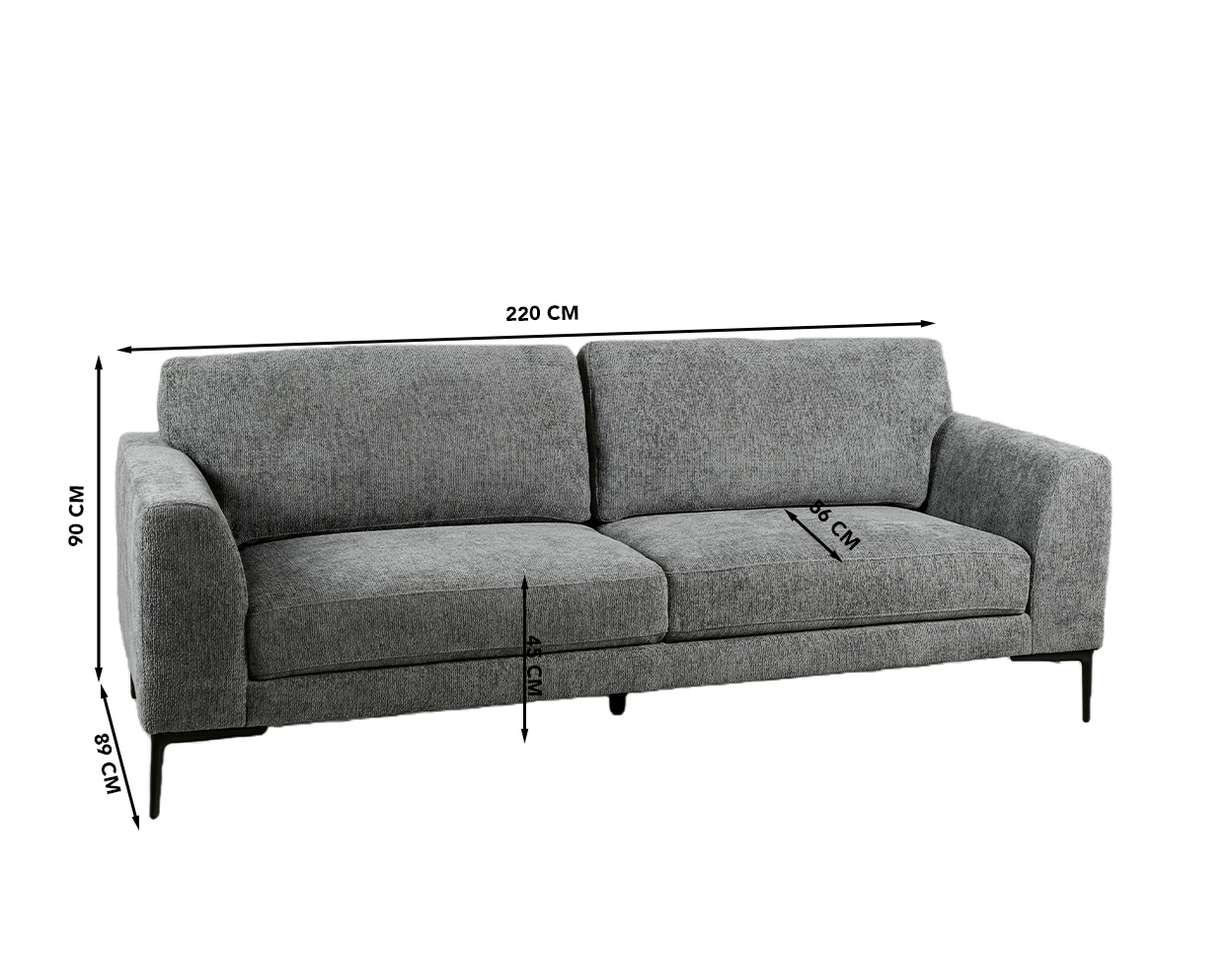 Dimensions (cm): 220 (W) x 89 (D) x 90 (H), seat height is 45 cm and seat depth 56 cm