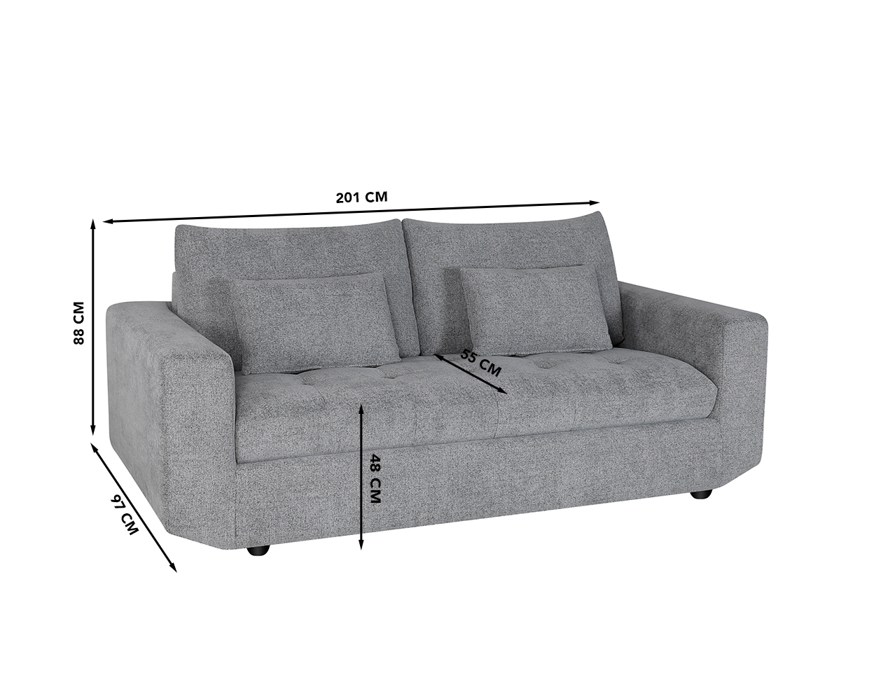 Dimensions (cm): 201 (W) x 97 (D) x 88 (H), seat height 48 cm, -depth 55 cm