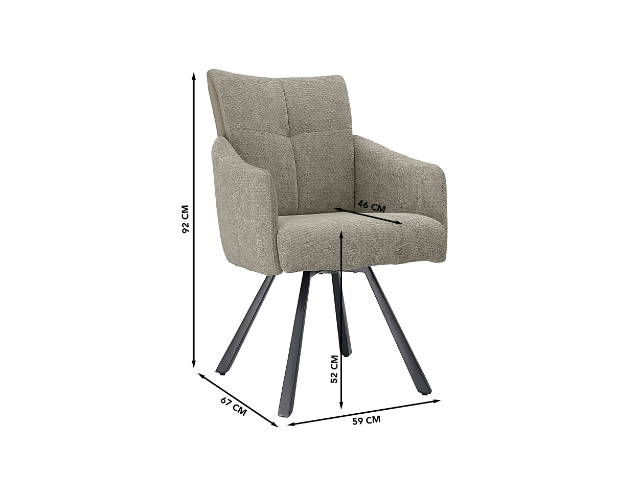 Dimensions (cm): 59 (W) x 67 (D) x 92 (H), seating height 52 cm and – depth 46 cm