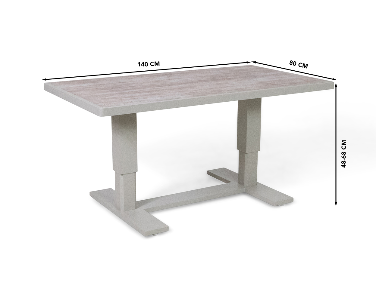 Table dimensions (cm): 140 (W) x 80 (D) x 48-68 (H)