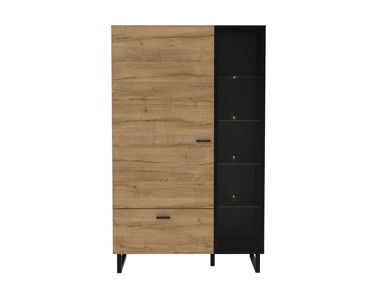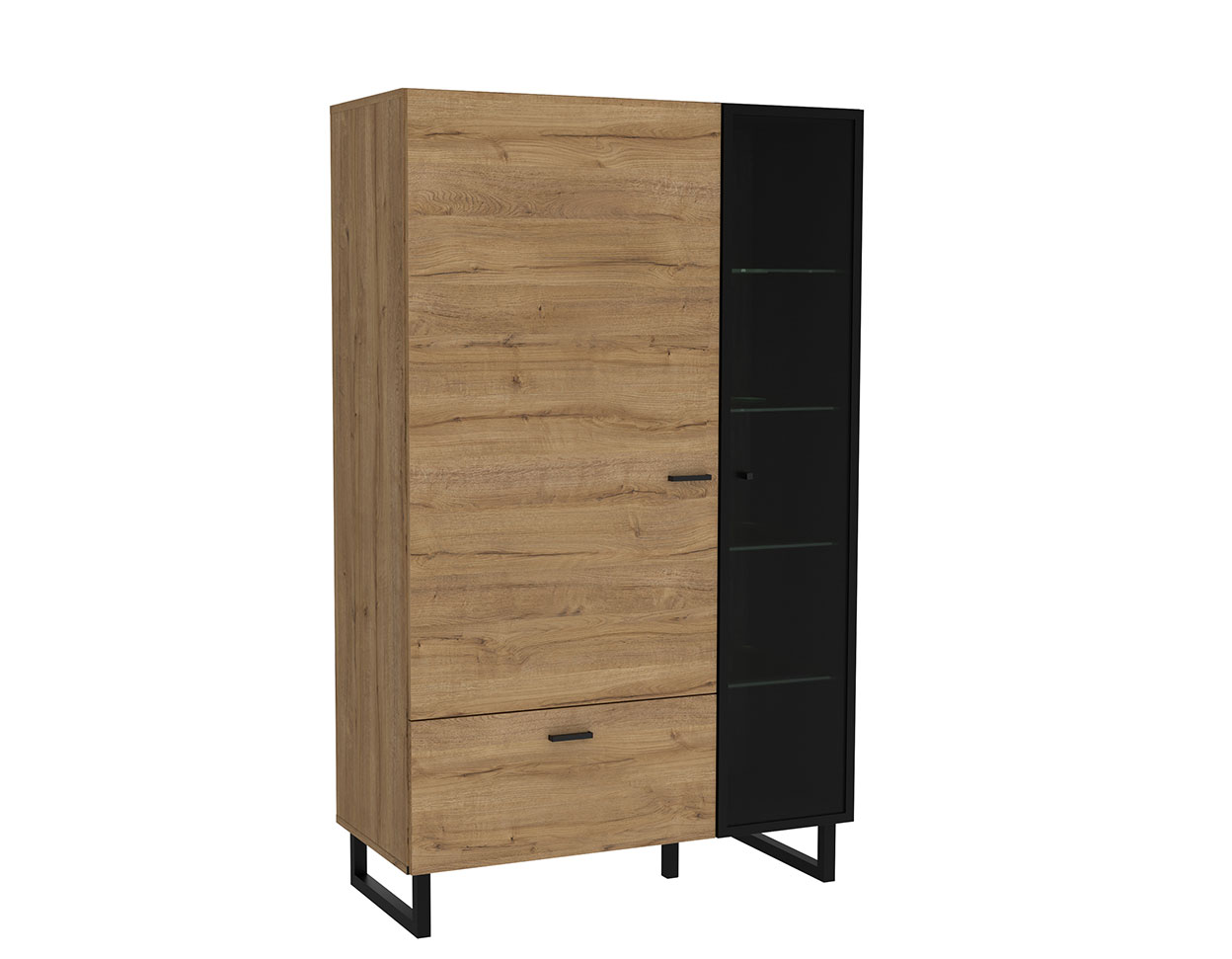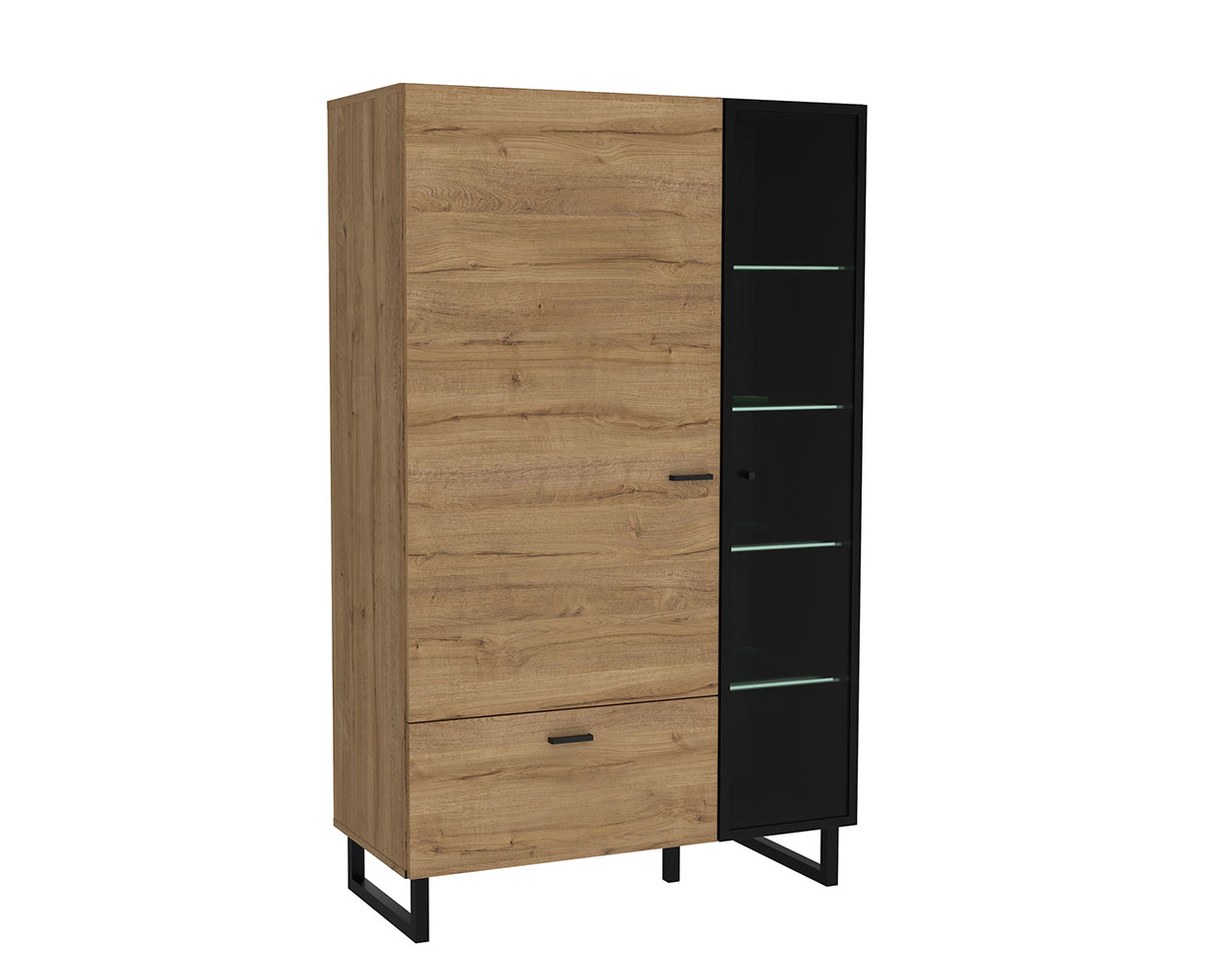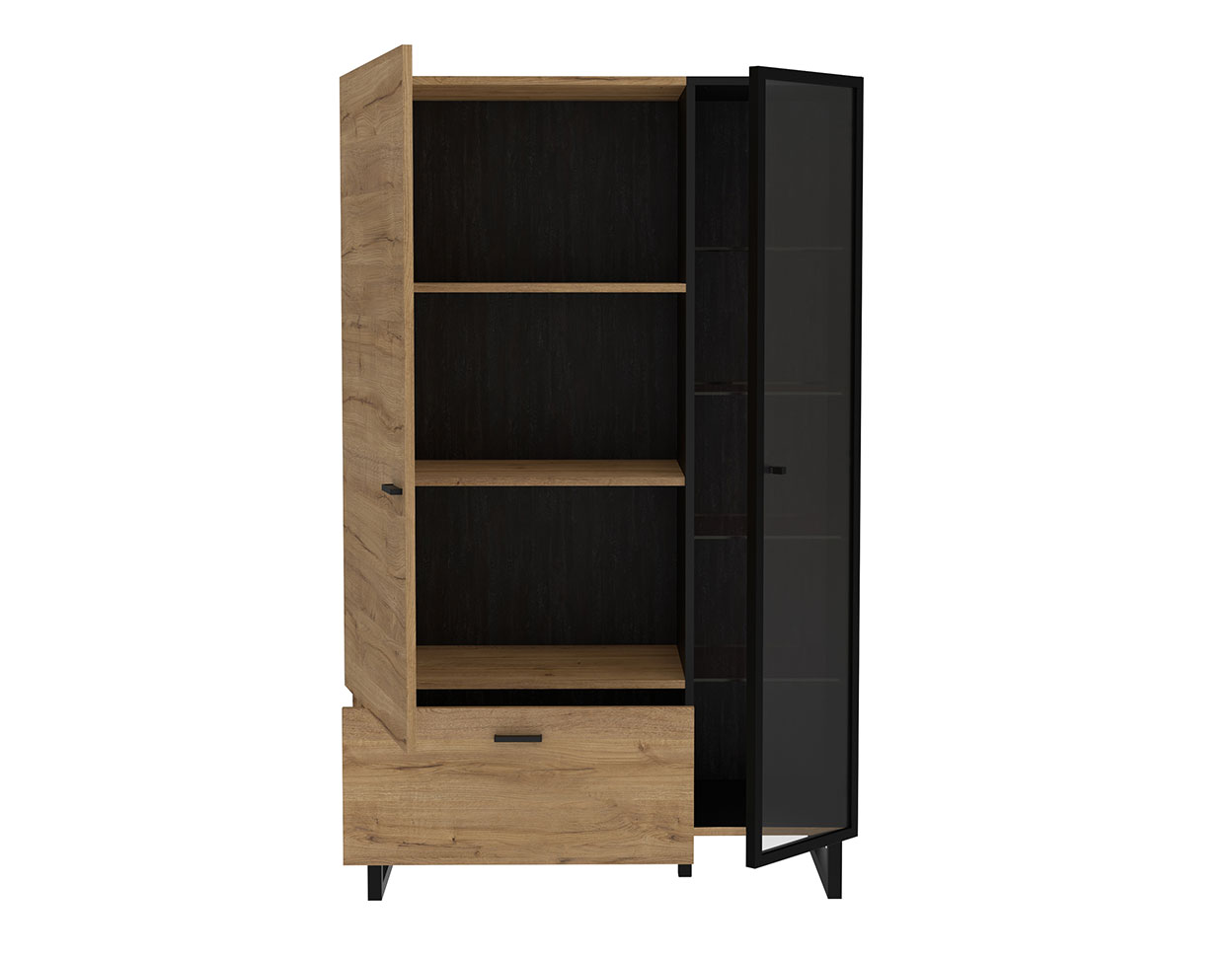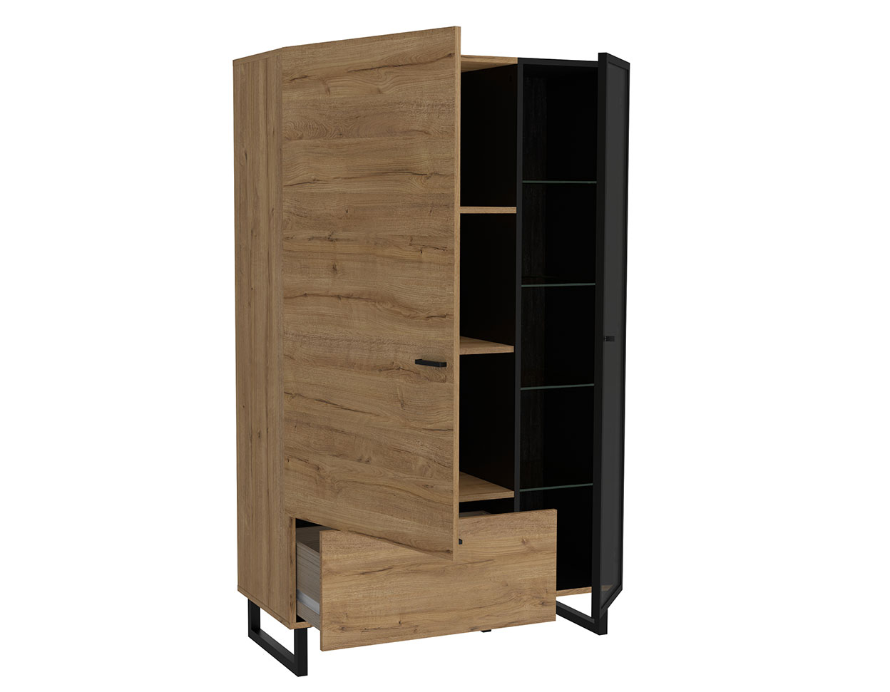 • Display cabinet has 2 cabinets with doors (one door is made of glass), shelves behind doors (behind glass door there are glass shelves)