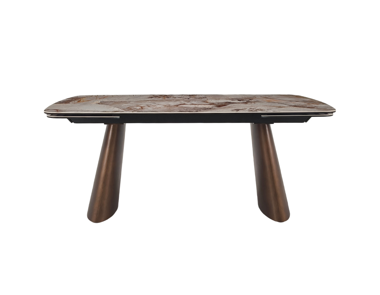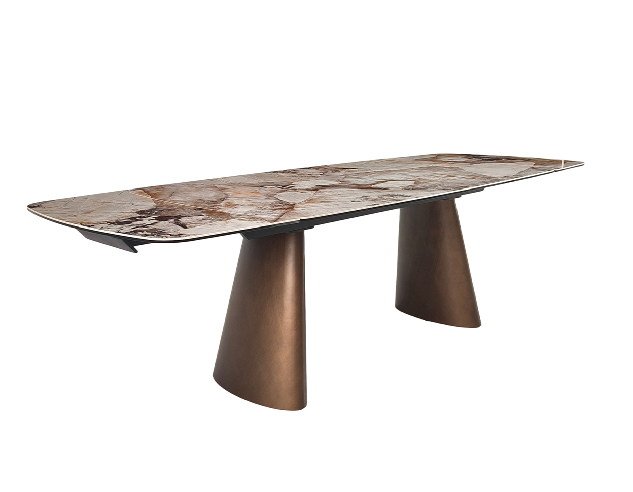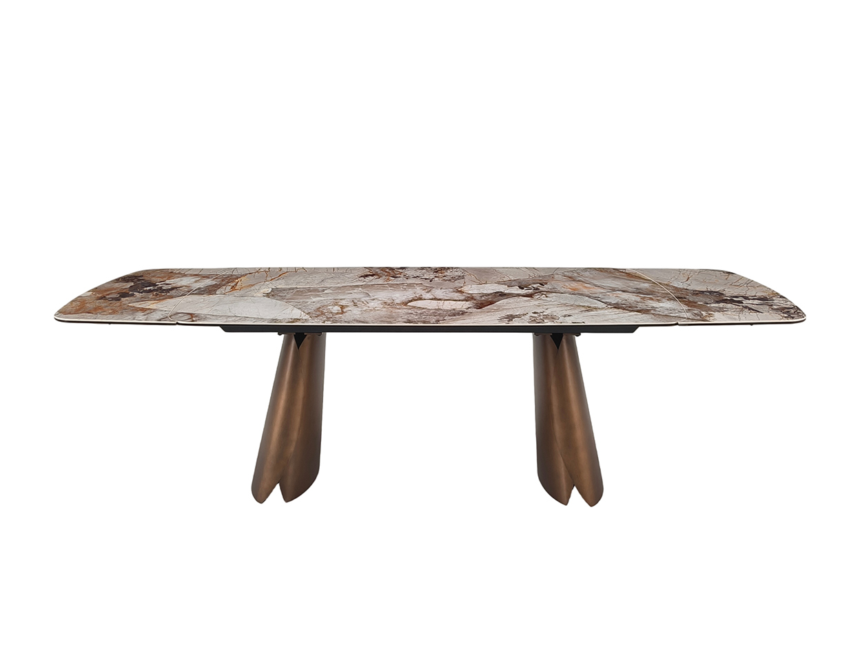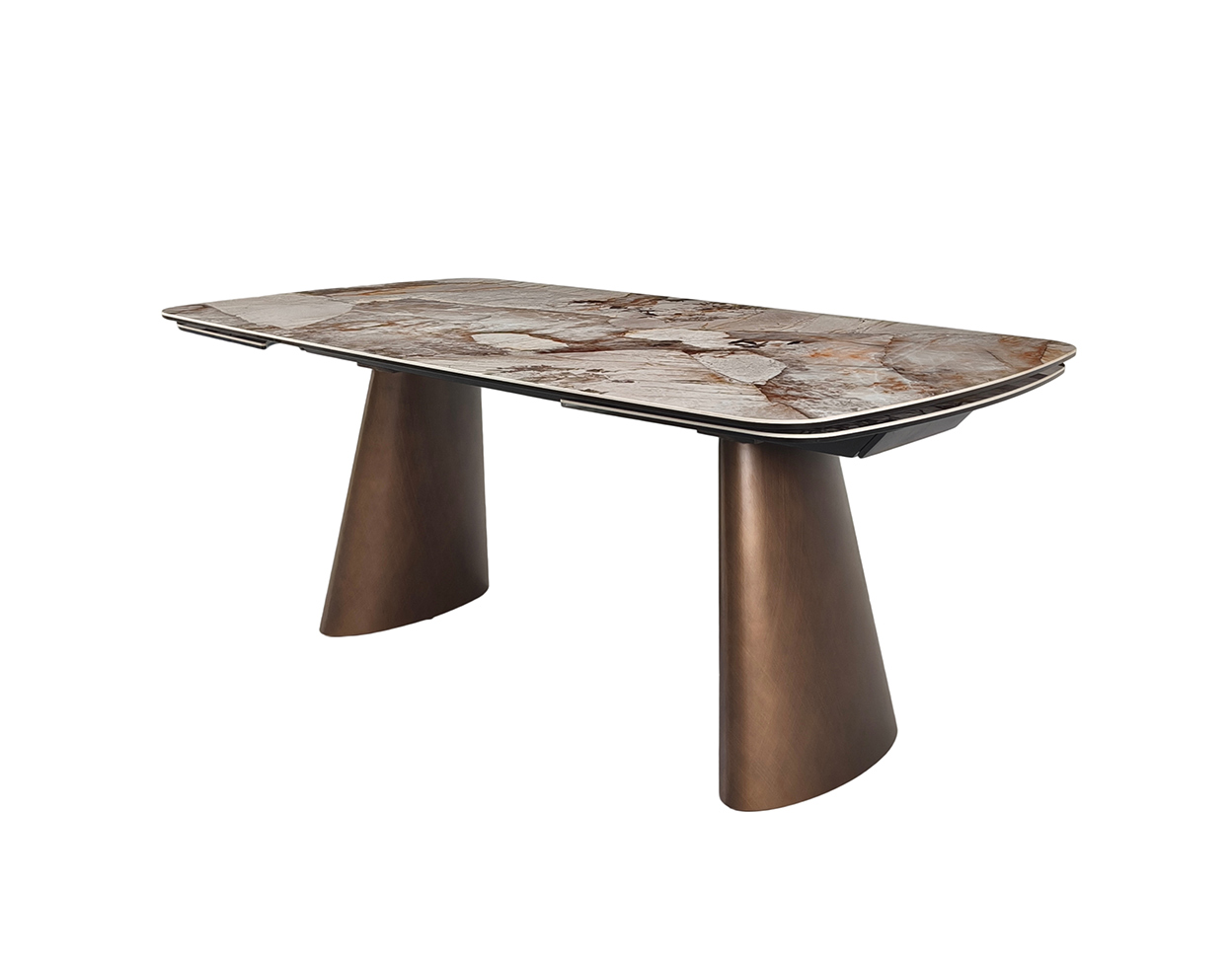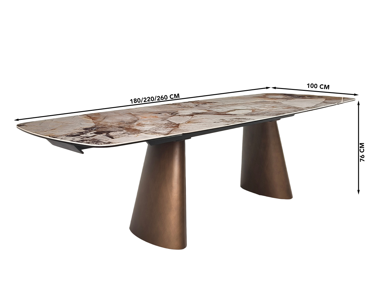 It is not recommended to place hot objects (e.g. pans) on the ceramic tabletop, as a sudden temperature change can cause damage, we recommend using a heat protection base. The table should be placed away from heaters and out of direct sunlight. Table mats are recommended to avoid stains and scratches. Use a soft and clean cloth to remove dust and light dirt, as liquids that get on the table do not soak into the ceramic and remain on the surface of the table, it may cause stains. Liquids should be cleaned from the table surface with an absorbent cloth. For cleaning, we recommend using a glass cleaner, for very stubborn stains, you can use an abrasive sponge.