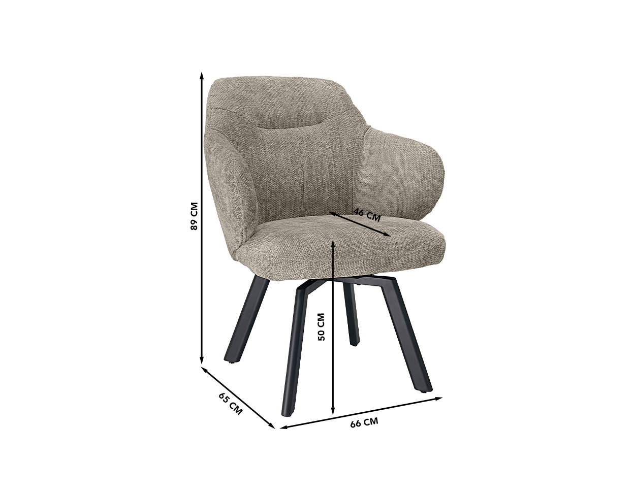 Dimensions (cm): 66 (W) x 65 (D) x 89(H), seating height 50 cm and – depth 46 cm