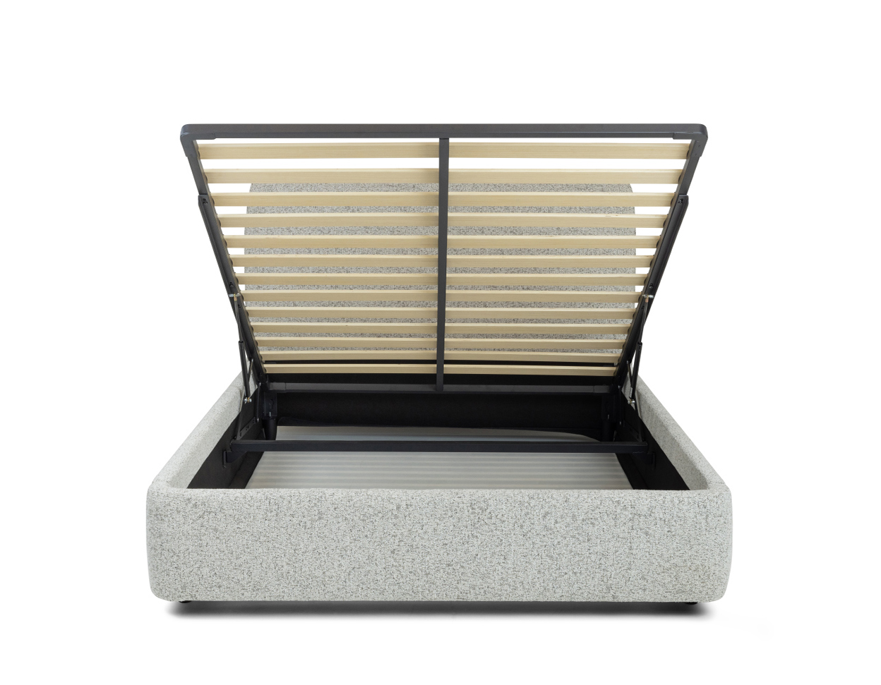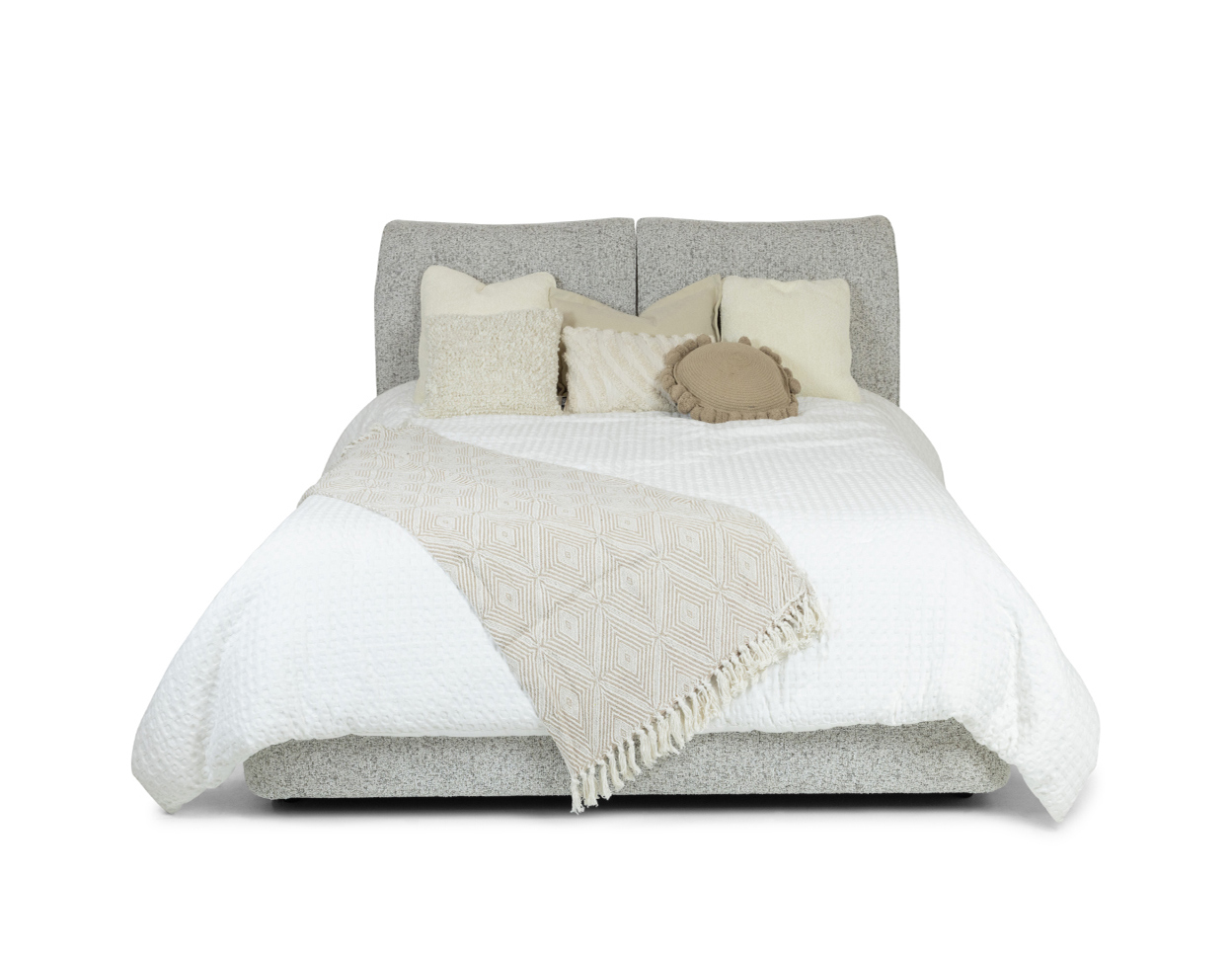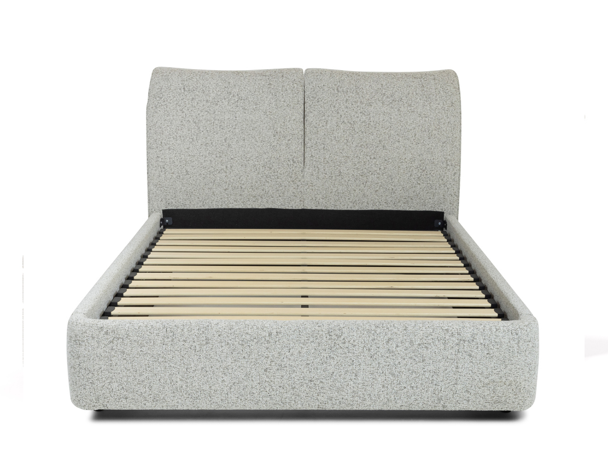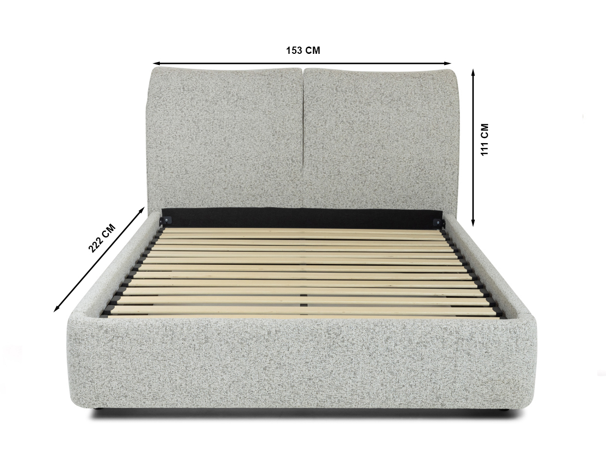 • The bed frame is made of plywood and steel, covered with foam and polyester fabric