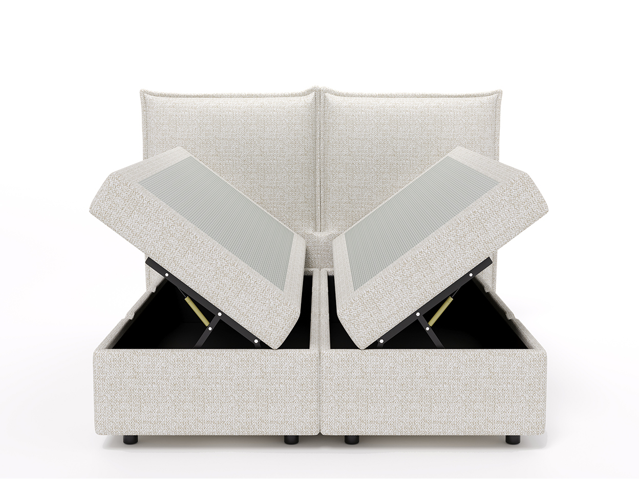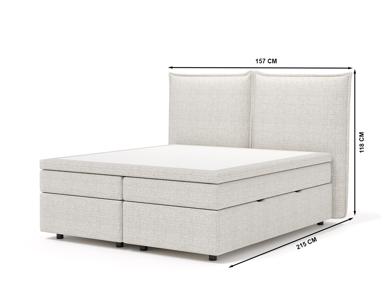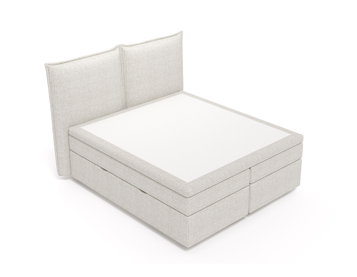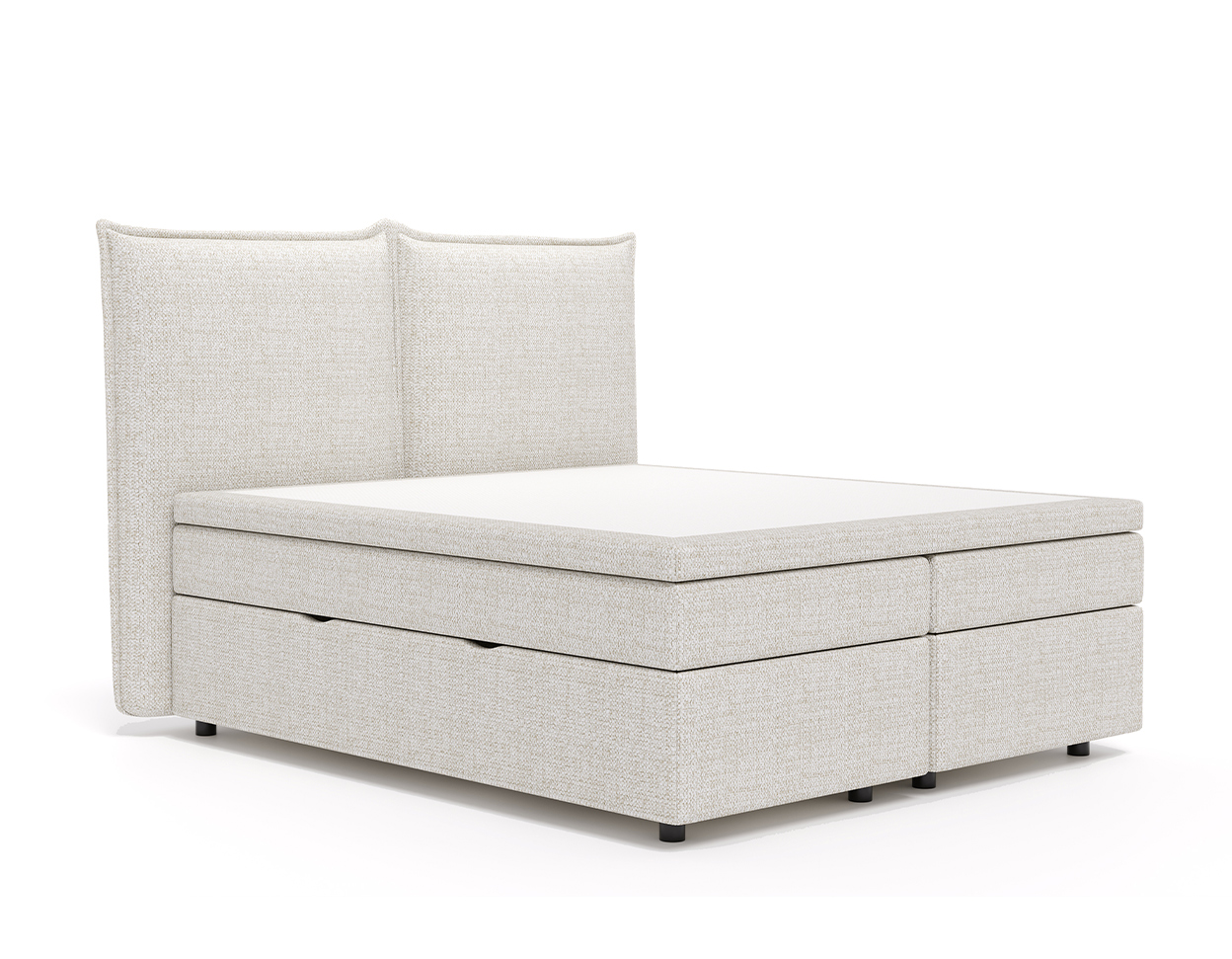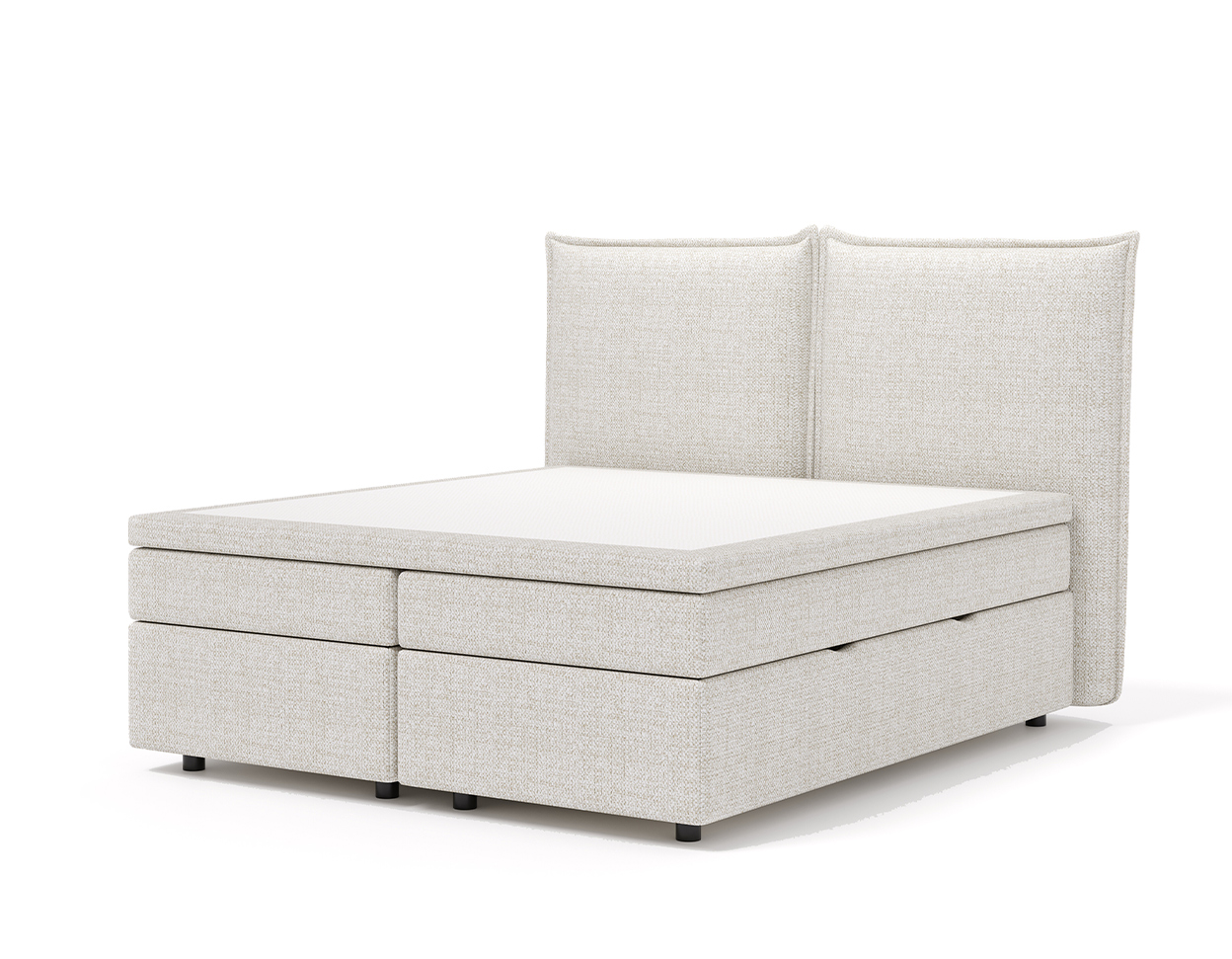 • The bed has a two-part pocket-spring mattress and a mattress cover on top (the mattress cover is open)