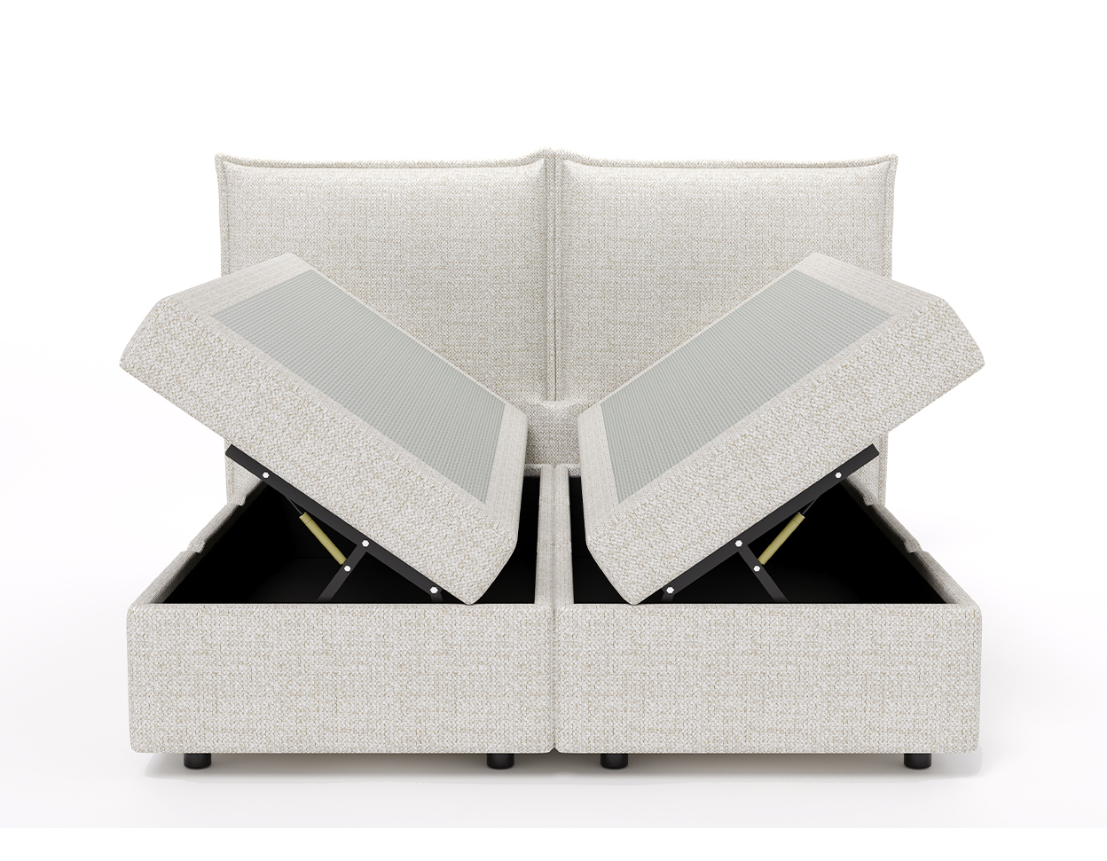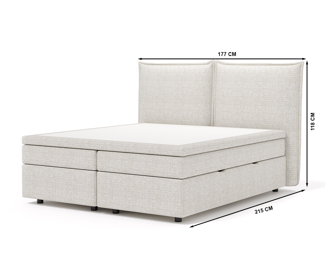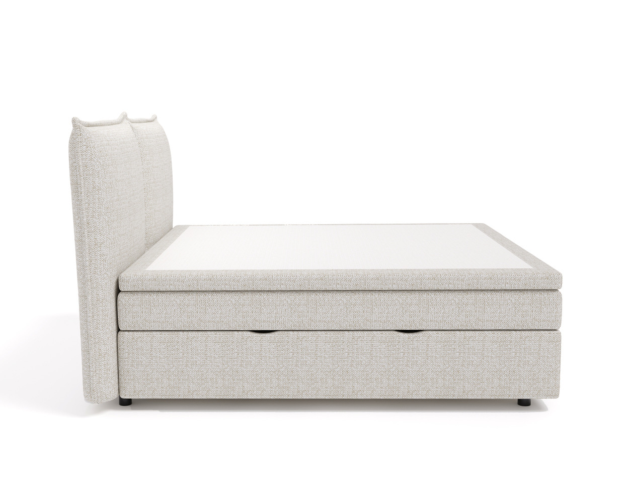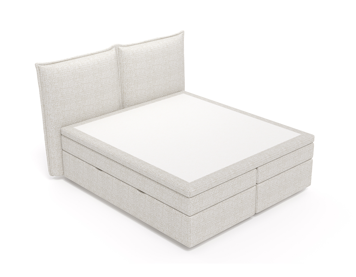 • The bed has a two-part pocket-spring mattress and a mattress cover on top (the mattress cover is open)