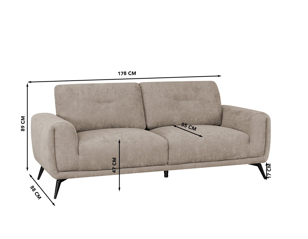 Dimensions (cm): 178 (W) x 88 (D) x 89 (H), seat height 47 cm, -depth 55 cm