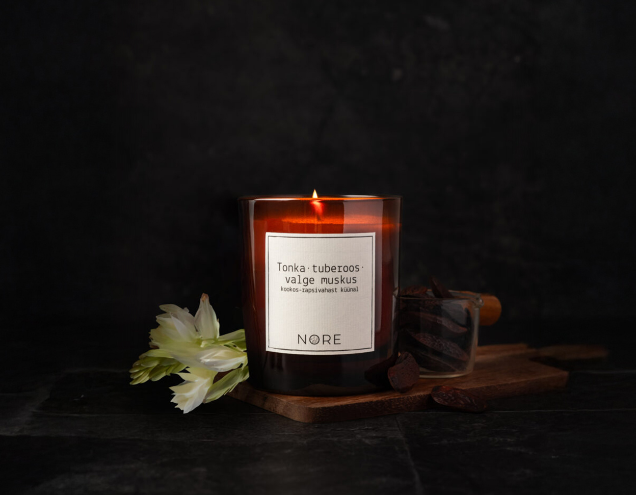 Nore candles are handcrafted using the finest fragrance oils and high-quality plant-based coconut-rapeseed wax, that does not contain paraffin or synthetic additives. High coconut content in our wax blend extends the burning time and ensures clean burning of the candle.