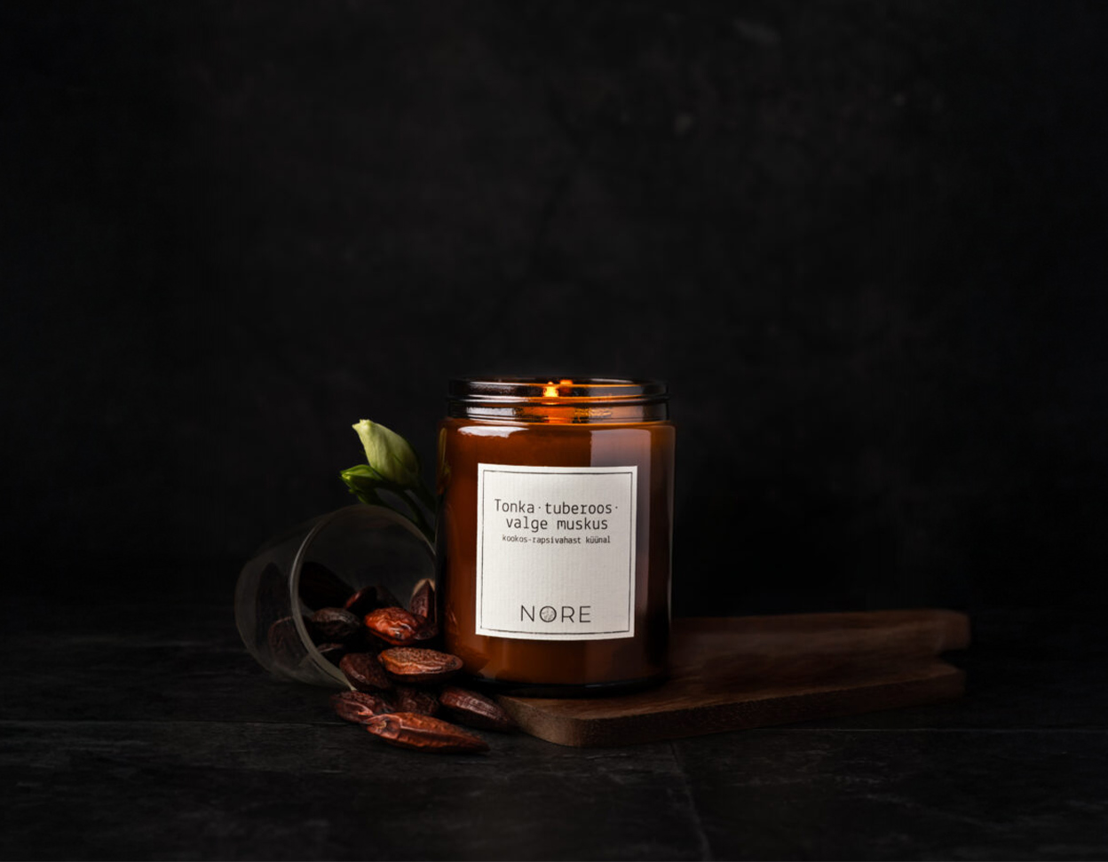 Nore candles are handcrafted using the finest fragrance oils and high-quality plant-based coconut-rapeseed wax, that does not contain paraffin or synthetic additives. High coconut content in our wax blend extends the burning time and ensures clean burning of the candle.