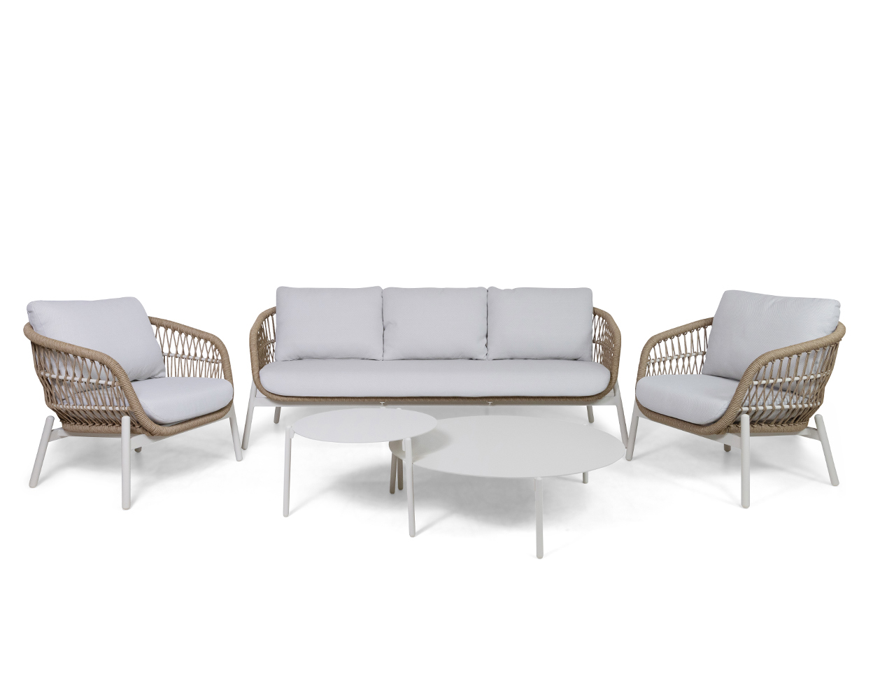 Aiamööbel ei vaja rutiinset hooldust, määrdumisel puhastage käsna või pehme harja ning puhastusvahendiga. Lauaplaadi ja alumiiniumraami kriimustuste vältimiseks hoidke neid eemal teravatest esemetest. Kerge vihma korral ei imbu vesi sisse, kuid siiski soovitame padjad tugeva vihmasaju puhul siseruumidesse viia. Aiamööblit võib hoida välistingimustes aastaringselt kuid soovitame patju hoiustada talvisel perioodil siseruumides!