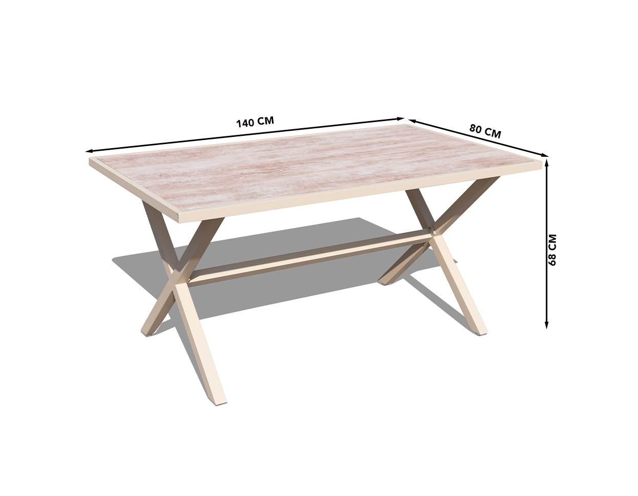 • Lauaraam on valmistatud alumiiniumist ja lauaplaadiks on karastatud klaas (lauaplaadi paksus 5mm)