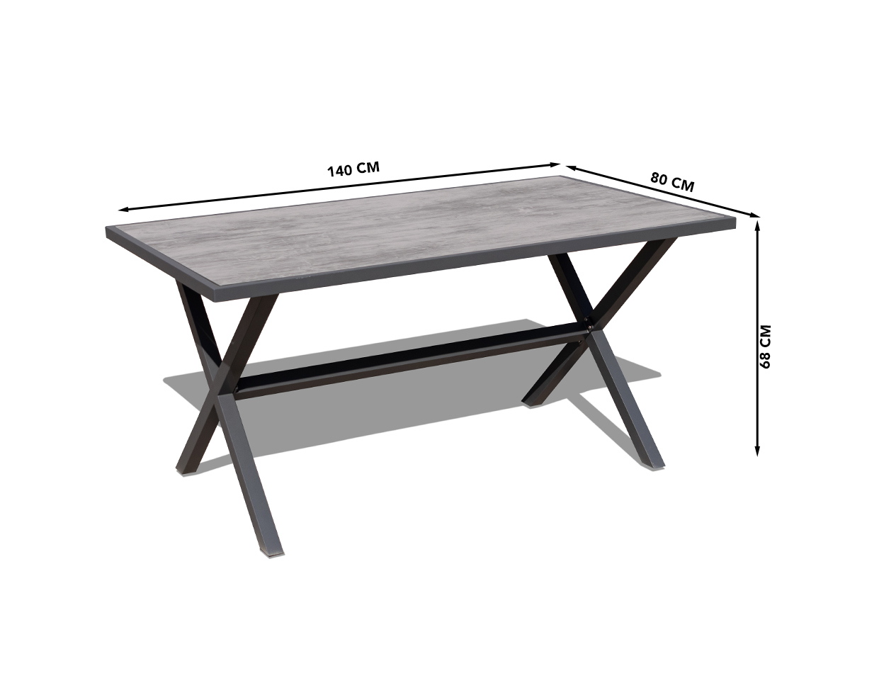 • Lauaraam on valmistatud alumiiniumist ja lauaplaadiks on karastatud klaas (lauaplaadi paksus 5mm)