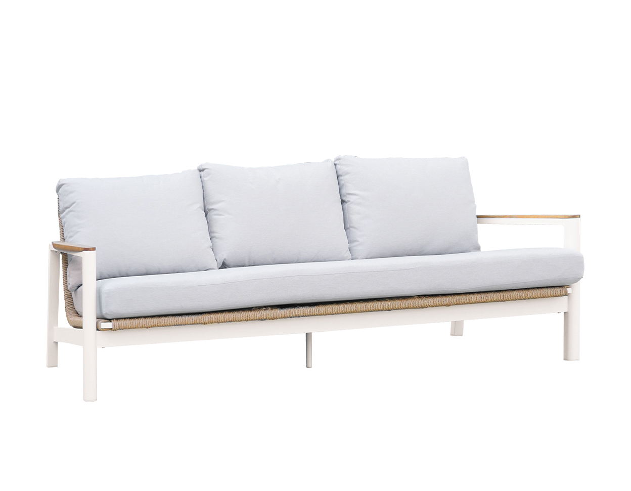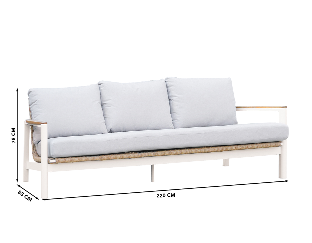 Aiamööbel ei vaja rutiinset hooldust, määrdumisel puhastage käsna või pehme harja ning puhastusvahendiga. Lauaplaadi ja alumiiniumraami kriimustuste vältimiseks hoidke neid eemal teravatest esemetest. Kerge vihma korral ei imbu vesi sisse, kuid siiski soovitame padjad tugeva vihmasaju puhul siseruumidesse viia. Aiamööblit võib hoida välistingimustes aastaringselt kuid soovitame patju hoiustada talvisel perioodil siseruumides!