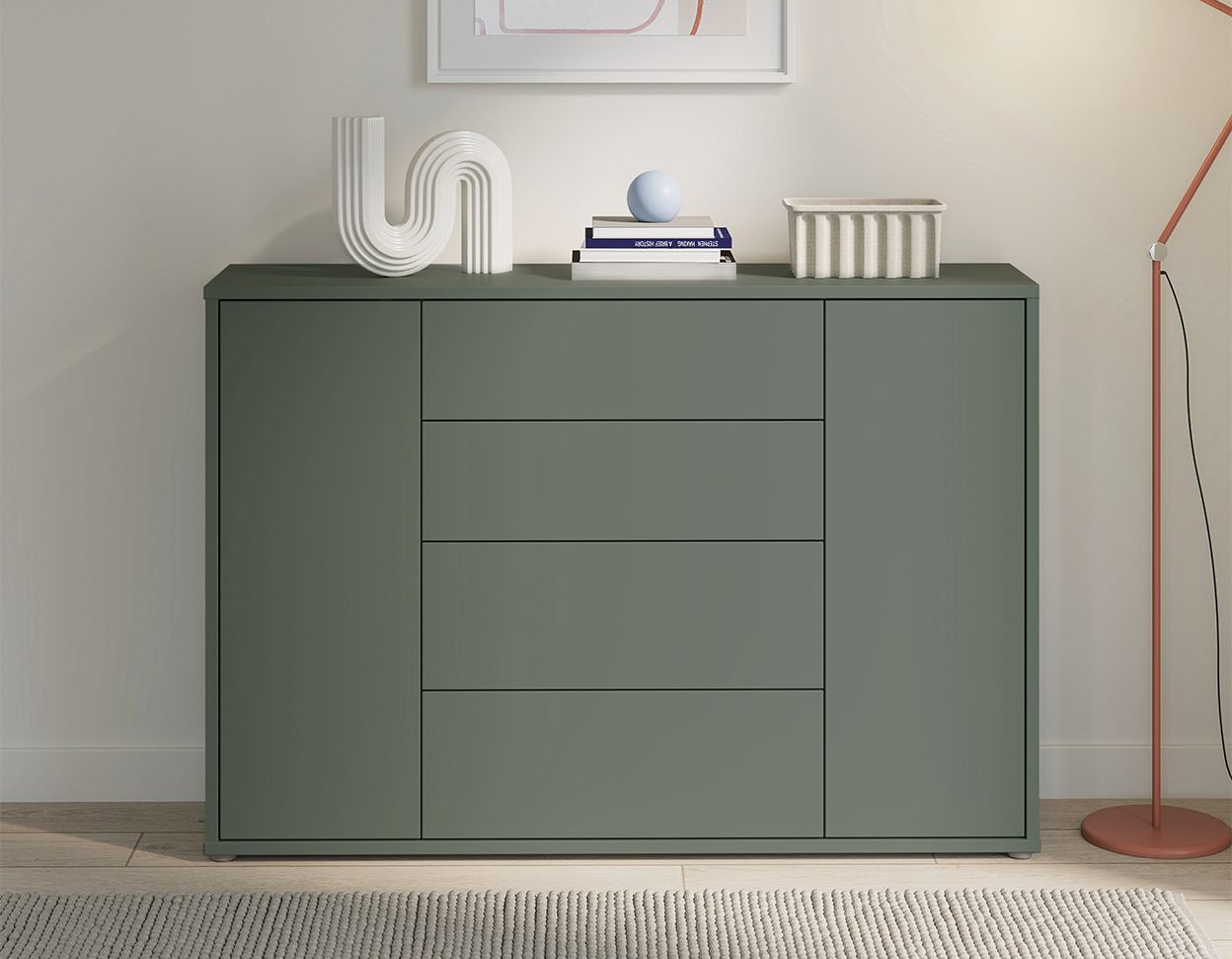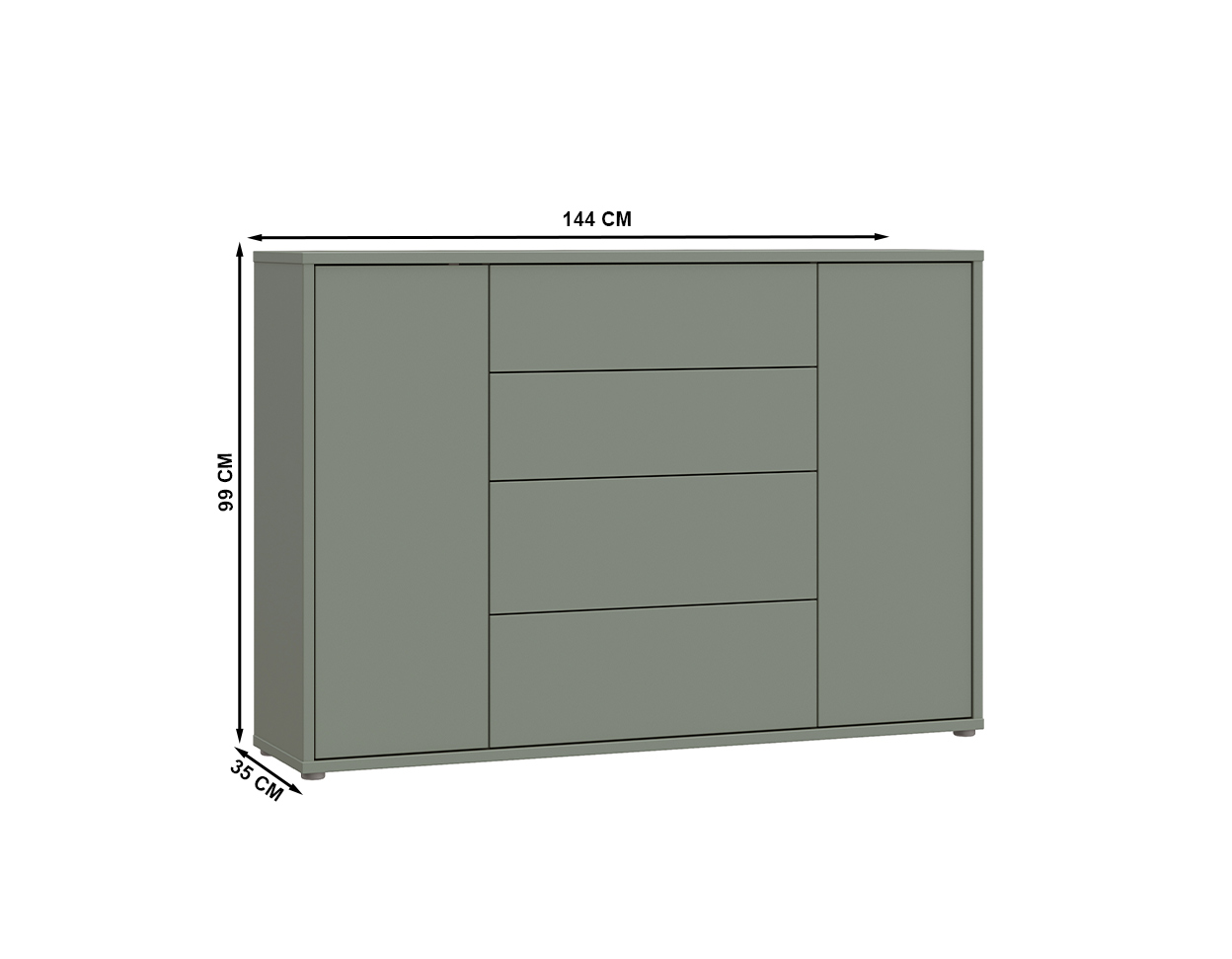 • Kummutil on kaks ust ja neli sahtlit, uste taga on riiulid