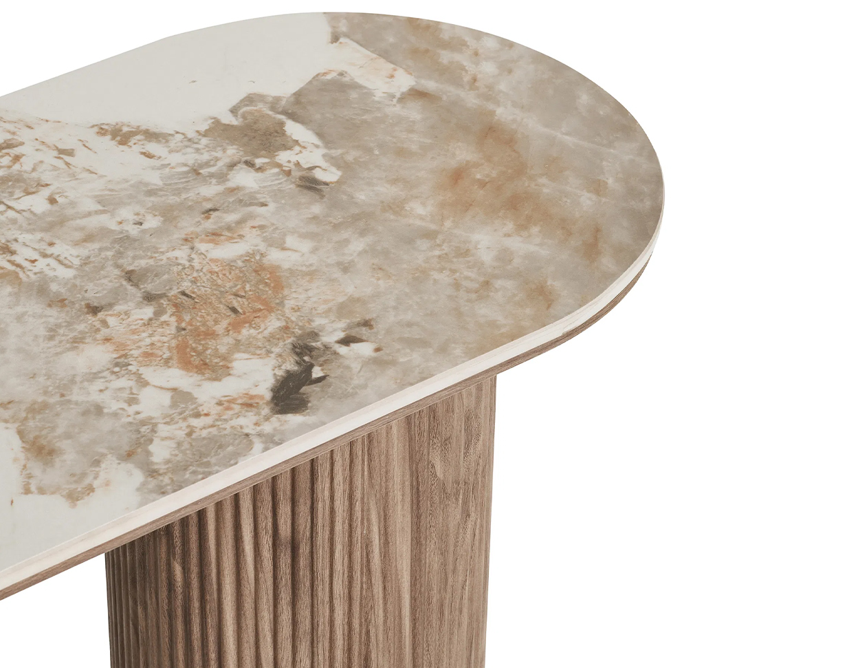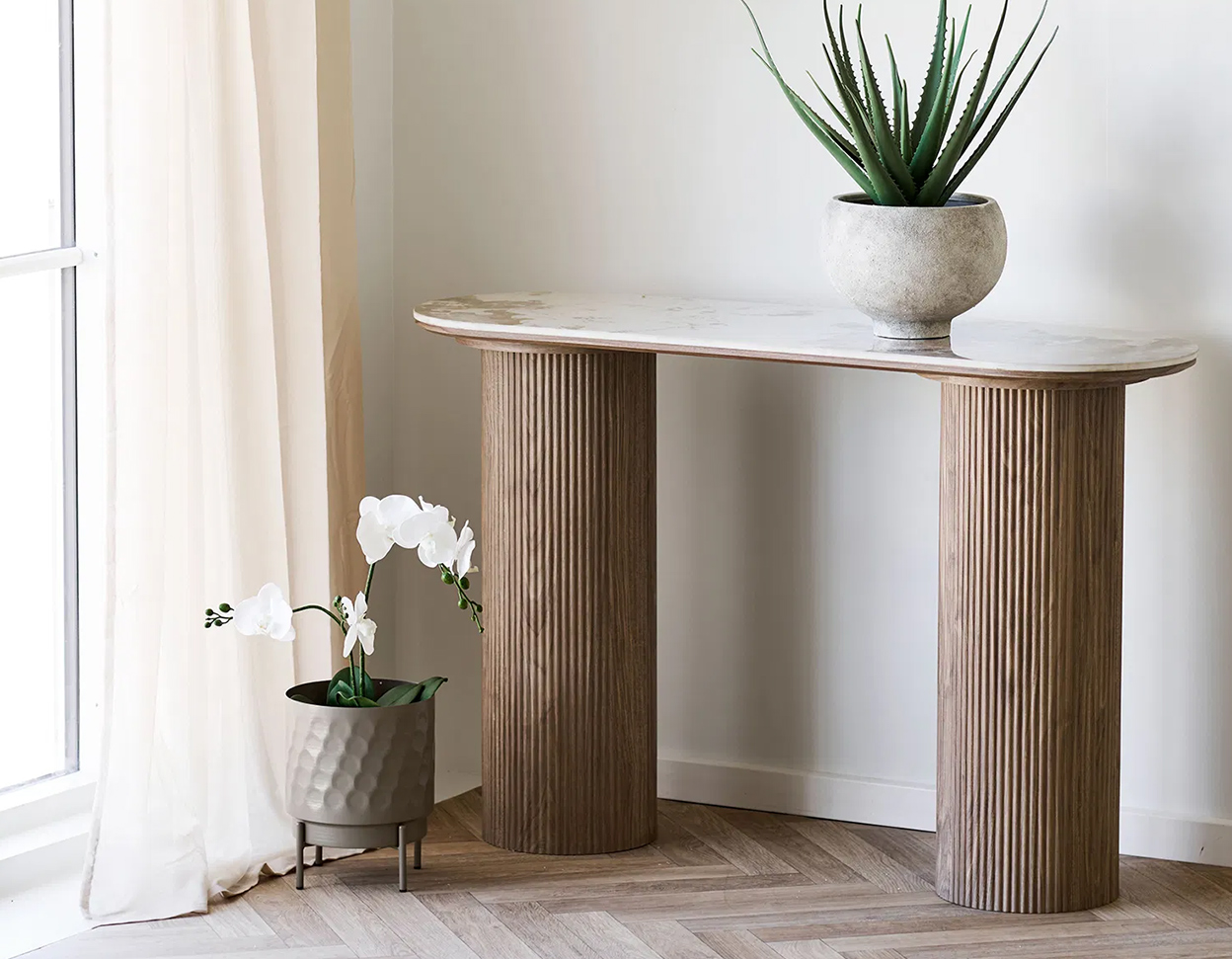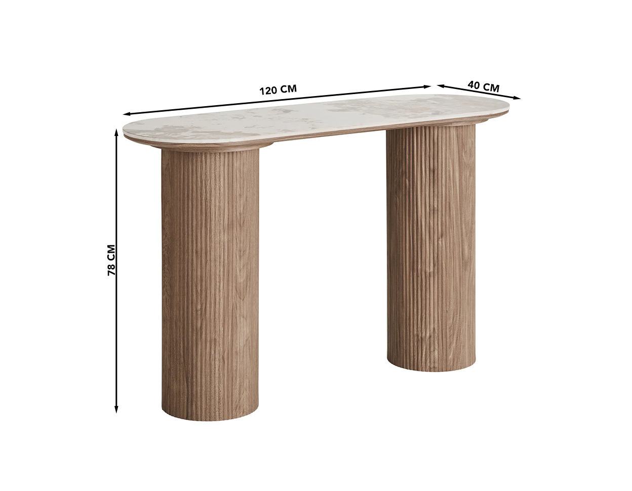 • Konsoollaud on valmistatud MDF-plaadist ja lauaplaati katab marmor imitatsiooniga keraamiline plaat