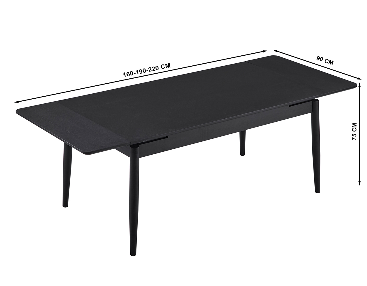 • Söögilaud on pikendatav (pikendamata kujul pikkus 160 cm), lisades ühe pikendusplaadi on laua pikkus 190 cm, lisades kaks plaati on laua pikkus 220 cm