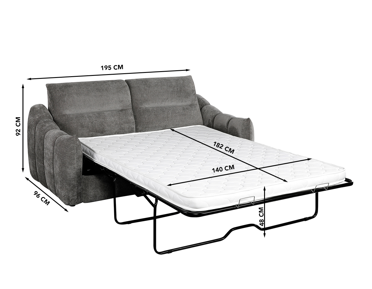 Mõõdud (cm): 195 (L) x 96 (S) x 92 (K), istumiskõrgus 48 cm, -sügavus 60 cm