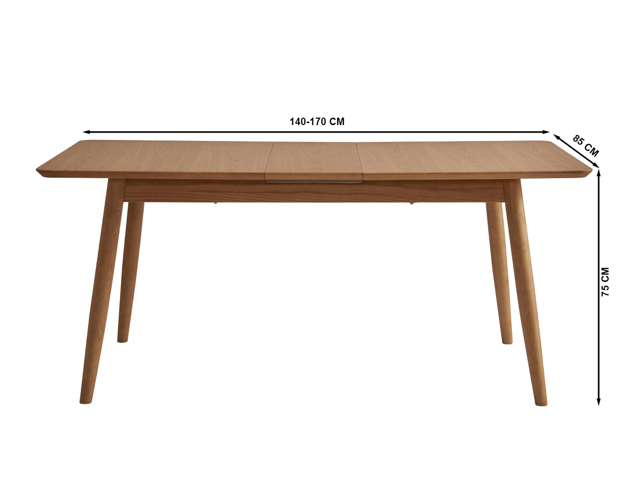 • Söögilaud on pikendatav (pikendamata kujul pikkus 140 cm), lisades pikendusplaadi on laua pikkus 170 cm