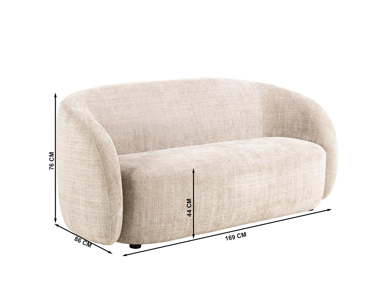 Mõõdud (cm): 169 (L) x 86 (S) x 76 (K), istumiskõrgus 44 cm