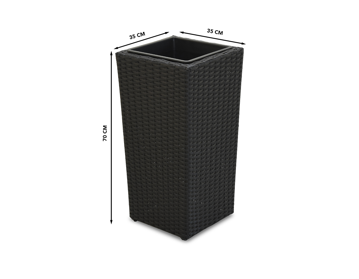 • Vastupidav materjal talub erinevaid ilmastikuolusid ja sobib suurepäraselt terrassile, rõdule või aeda (soovitatav torgata augud põhja alla, et vesi välja jookseks)