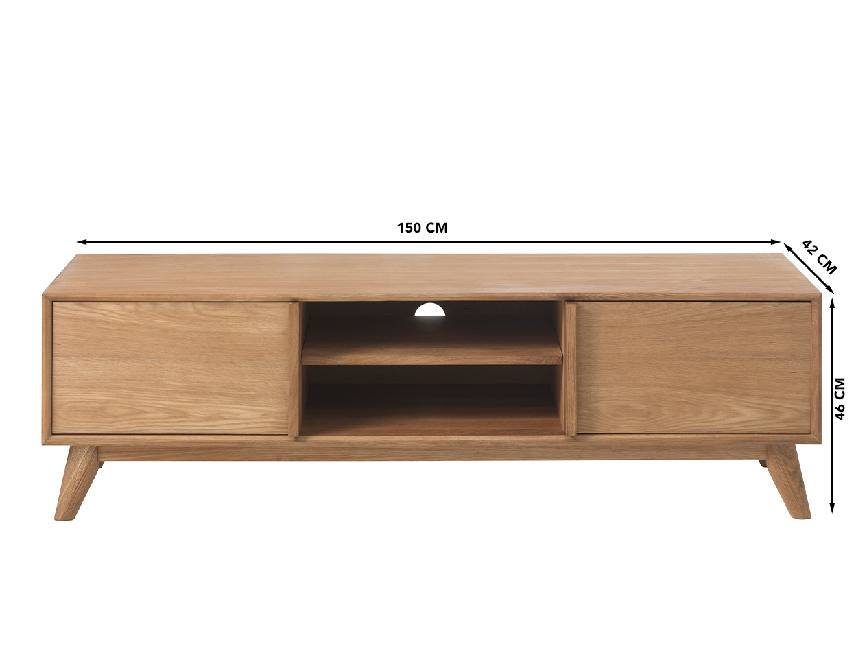 • TV-alus on valmistatud tammespoonist, MDF-plaadist, puitlaastplaadist ja tammepuidust